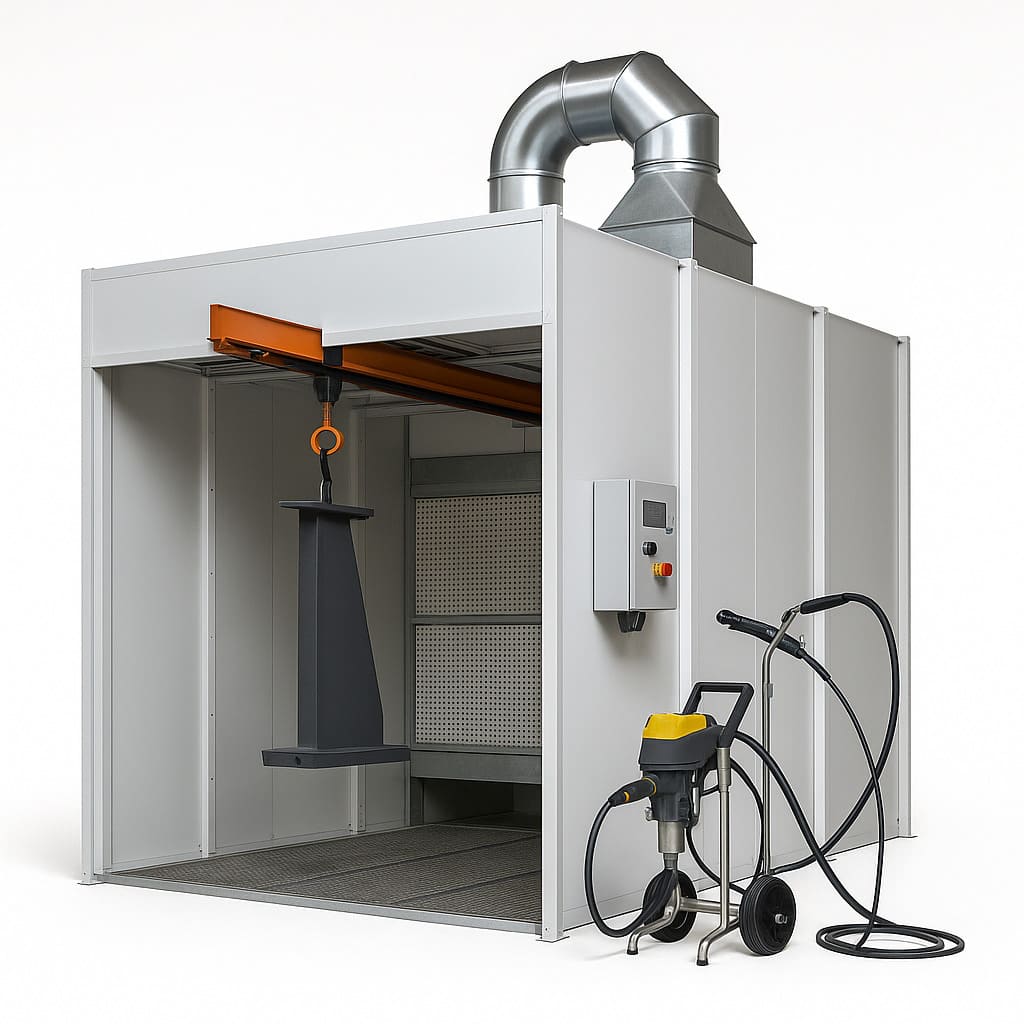 Сначала фиксируем, что именно подлежит оформлению: отдельные камеры, автономные посты или полностью связанная линия с подготовкой поверхности, конвейером, кабиной распыления и сушкой. Разбираем схемы движения деталей, расположение операторов и основных узлов.