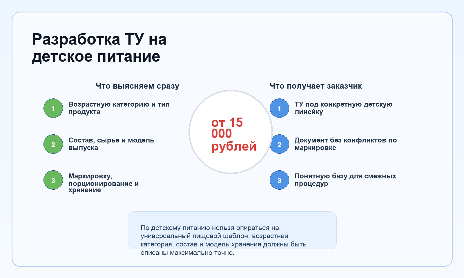 Отдельное технические условия по детскому питанию нужно тогда, когда предприятие хочет описать конкретный продукт аккуратно и без риска, что документ окажется слишком общим для такой чувствительной категории.